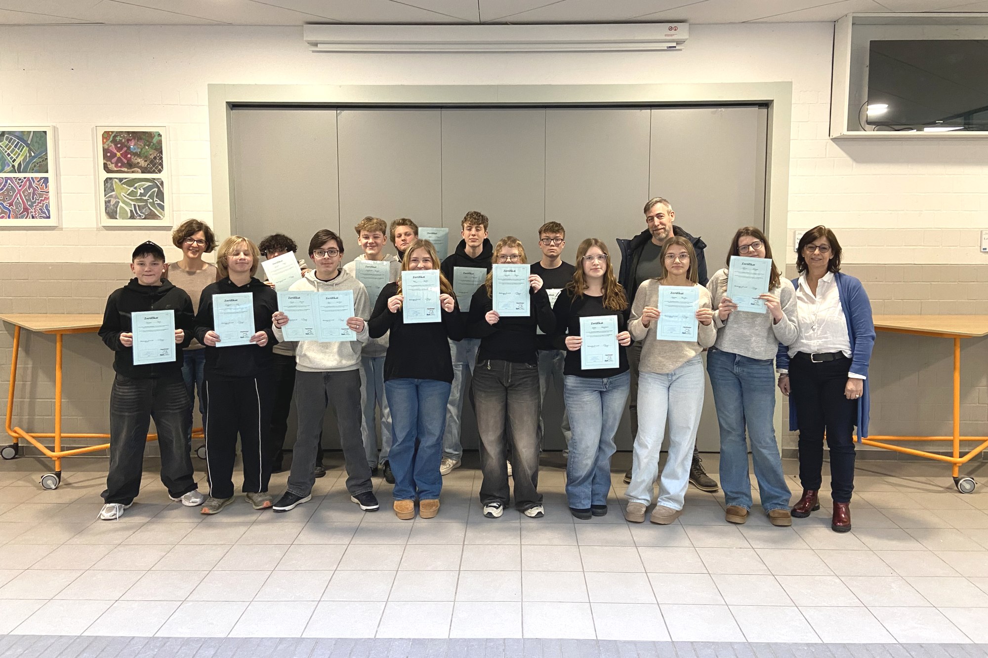 Zum Abschluss ihres Besuchs haben wir noch ein gemeinsames Foto mit der Landrätin gemacht. Dabei wurden auch die Streitschlichter-Zertifikate überreicht.