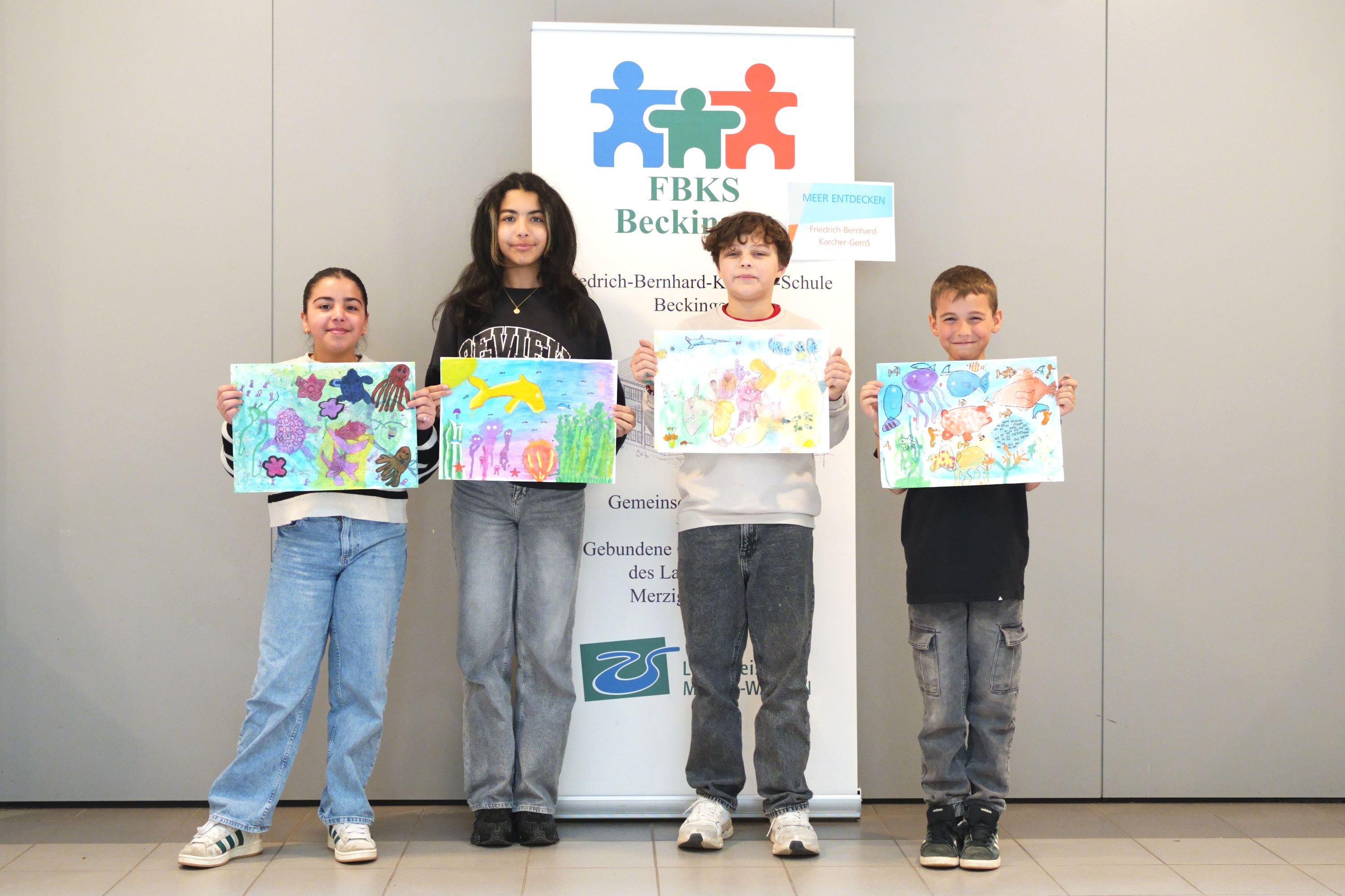 Gemalte und gezeichnete Seepferdchen, Fische, Schildkröten und Kraken fanden ihren Platz. Auch die Verschmutzung der Meere durch unachtsam weggeworfenen Müll nahm Raum ein.